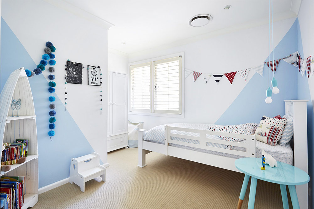L'utilisation de peinture pour décorer la chambre d'un enfant présente de nombreux avantages, dont certains vont au-delà de l'évidence. Alors que l'incroyable variété de couleurs et de nuances contribue à créer une atmosphère délicieuse et vibrante, la vraie dignité de la peinture apparaît lorsque vous décidez de changer la palette de couleurs de l'intérieur. Vous pouvez facilement changer la teinte à tout moment avec un minimum d'effort, par exemple, utilisez de la peinture pour indiquer la couleur de la saison. Une tactique intéressante ne consiste pas à peindre les murs, mais à ajouter un décor coloré aux murs blancs.