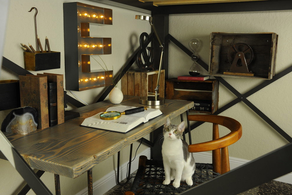Chambre d'ado noire et rouge dans un style industriel (de Cynthia Prix – Prix La conception).