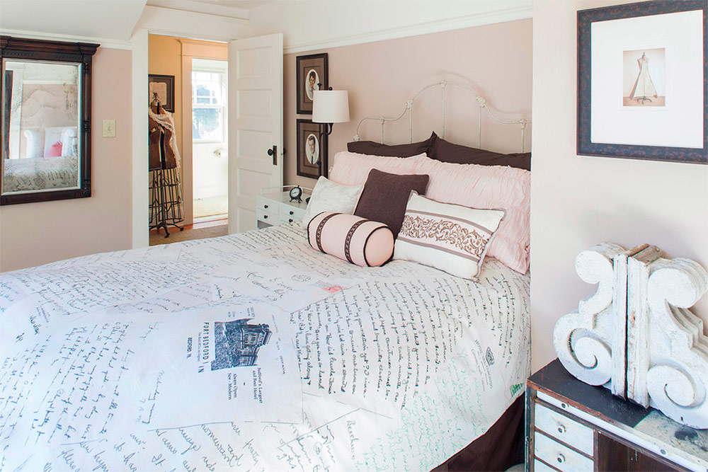 Tout s'adaptera à l'intérieur d'une chambre dans le style du shabby chic: des miroirs anciens et anciens qui se tiennent négligemment dans le coin de la pièce, un support fait par vous-même à partir de vieux coffres, ou des œuvres d'art qui ajoutent de la personnalité à l'intérieur. Certes, tout le monde ne peut pas se permettre de réaliser ce style dans sa chambre: vous aurez besoin d'investissements financiers pour une évaluation professionnelle de l'âge du meuble, et assez de patience pour obtenir le look souhaité.