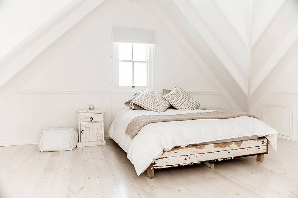 Chambre lumineuse et spacieuse en blanc (de Mina brinkey).