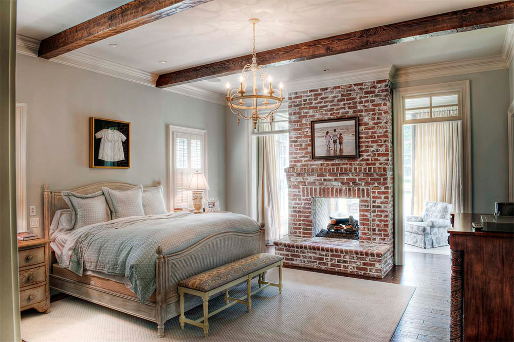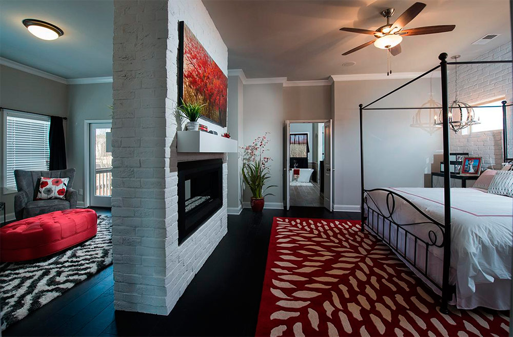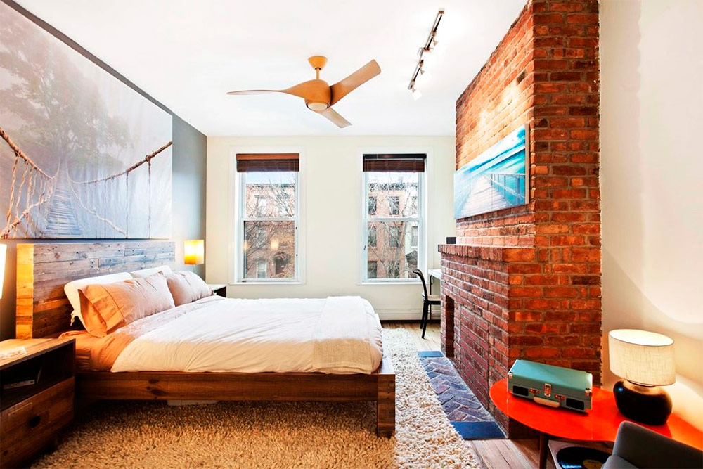 Si votre chambre a déjà un mur de briques, la quantité de travail à venir sera évidemment beaucoup moins importante. Dans ce cas, il vous suffit de nettoyer un peu la maçonnerie et d'appliquer une couche de scellant, ce qui empêchera la destruction de la brique au fil du temps. Vous pouvez choisir un scellant ordinaire ou qui donnera un mur brillant à un mur de briques et le rendra ainsi plus approprié pour une chambre à coucher moderne. Vous pouvez jeter la teinte orange-rougeâtre naturelle de la brique et peindre le mur dans une couleur compatible avec la palette de couleurs du reste de votre chambre.