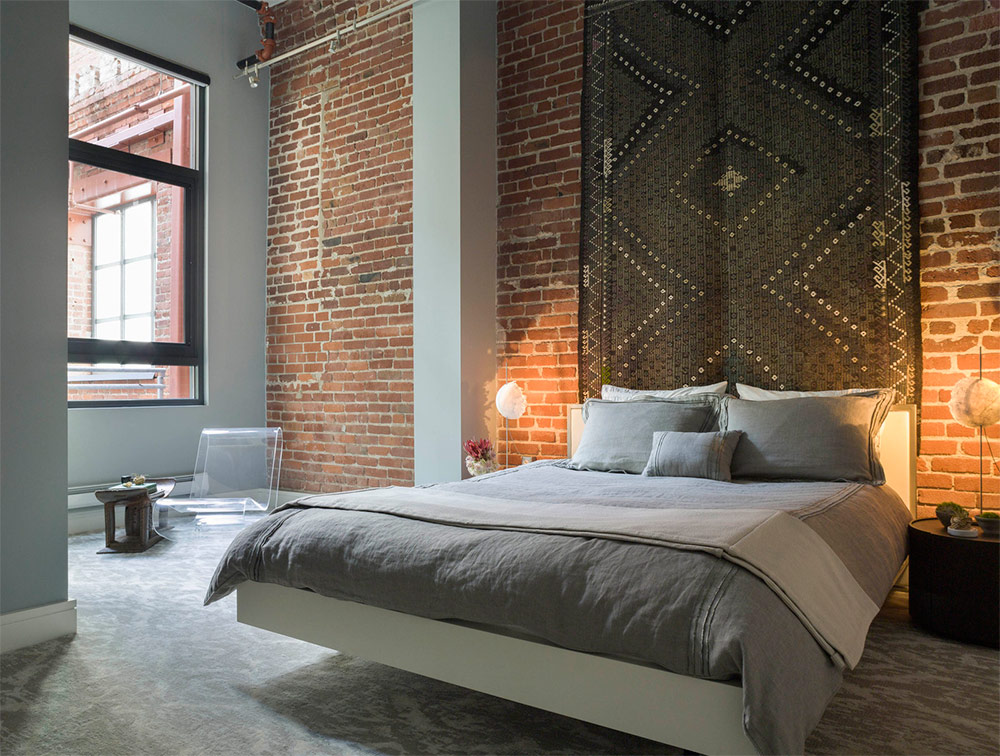 Il est difficile de nier qu'un mur de briques semble très approprié dans les chambres industrielles, où il y a des éléments tels que des conduits de ventilation exposés, de grandes fenêtres avec des cadres métalliques et des poutres en bois nues. Un mur de briques fait partie intégrante de ce récit, et tout intérieur de style industriel sans lui semblerait définitivement incomplet. Bien sûr, si vous le souhaitez, vous pouvez créer une atmosphère plus douce et plus confortable dans ces chambres industrielles en ajoutant des touches de lumière modernes et en suivant le chemin du chic industriel.