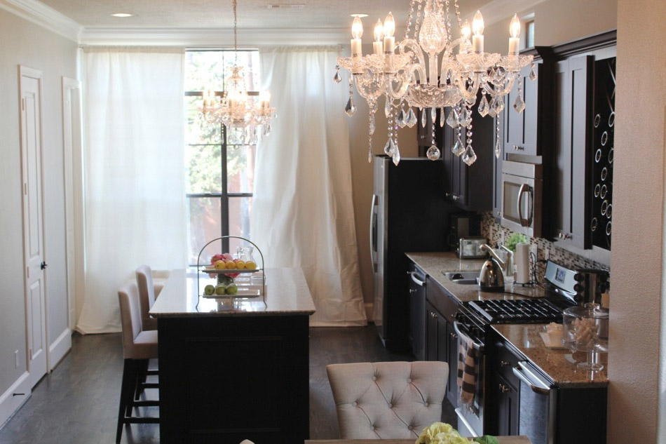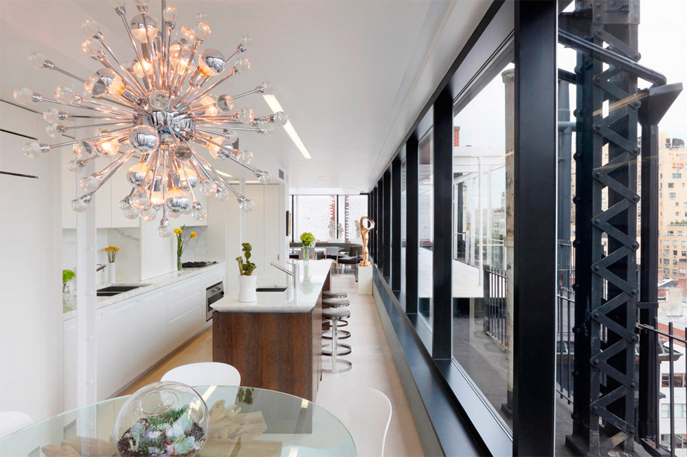 Dans le même temps, il n'est pas nécessaire que le luminaire corresponde au design de la pièce. L'éclectisme est une tendance très populaire aujourd'hui, qui vous permet de mélanger plusieurs styles dans une même pièce. Par exemple, un lustre en cristal peut être accroché non seulement dans une pièce qui reflète les classiques, mais il peut décorer un style minimaliste, la cuisine ne perdra pas son charme. Jouer sur les contrastes est une option qui ne vous décevra pas.