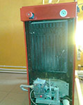 Après avoir installé la cheminée, j'ai immédiatement décidé d'allumer la chaudière, régler le régulateur à 30 degrés. Mais un problème est survenu, il semble qu'il ait tout fait correctement: la fumée est entièrement recouverte, le ventilateur est fermé, la chaîne se bloque et la température dépasse 70. J'ai commencé à regarder quel était le problème et l'ai trouvé, trouvé 4 trous dans le ventilateur, les a enduits. La chaudière est devenue un peu mieux chauffée, mais pas parfaite, alors j'ai commencé à chercher les fissures suivantes. Il a poussé la doublure vers le bas et il s'est avéré qu'il y avait des fissures. Je les ai également enduits, après quoi la chaudière a commencé à fonctionner parfaitement et le thermostat ne ment plus.