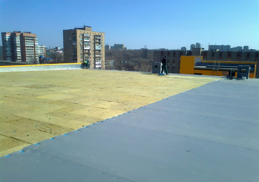 Comme base pour les types de toiture à membrane, des dalles de plancher en béton armé et des tôles profilées en métal peuvent être utilisées. Eh bien, l'isolation thermique est mieux réalisée à partir de laine minérale. Pour ce faire, soit des plaques dures de ce matériau sont prises, soit combinées. La membrane en chlorure de polyvinyle est installée directement sur la base à travers une couche d'isolation (elle doit être posée séparément). La fixation a lieu aux endroits où des joints se forment entre les rouleaux de matériau. Les attaches sont utilisées spécialement.