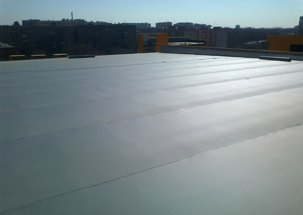 - Lors de l'installation d'un tel toit, il n'est pas nécessaire d'enlever l'ancien revêtement de sol (à cause de cela, des fuites dans le béton peuvent apparaître). En fusionnant l'ancien revêtement, au contraire, nous renforçons l'hydroprotection.