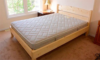 Un lit avec un cadre en palplanches ou en panneaux de particules stratifiés sera une excellente option économique pour une jeune famille. Le matériau est fabriqué sur une base naturelle, mais en utilisant des additifs adhésifs synthétiques. Avant d'acheter, il sera utile de demander au vendeur un certificat de sécurité.