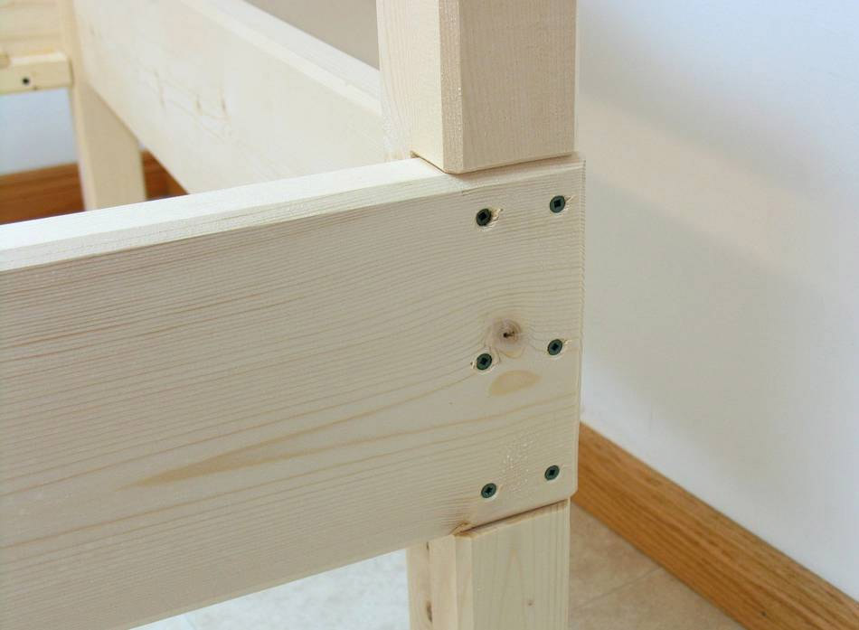 Lorsque vous utilisez du bois de construction pour la fabrication de meubles, ils doivent être sélectionnés avec beaucoup de soin. Mais le cadre de notre lit, heureusement, est si lourd et durable qu'une légère déformation de la planche n'est pas terrible - ce défaut sera facilement corrigé lors du montage de la structure.
