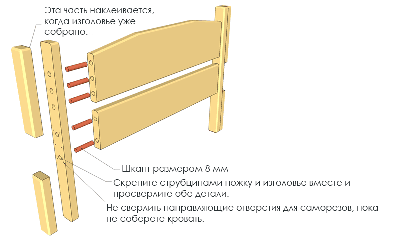 La tête de lit et le pied du lit sont identiques, sauf que la conception de la partie supérieure de la jambe est légèrement différente sur un dos, ce qui vous permet de placer ici la balustrade de la clôture.