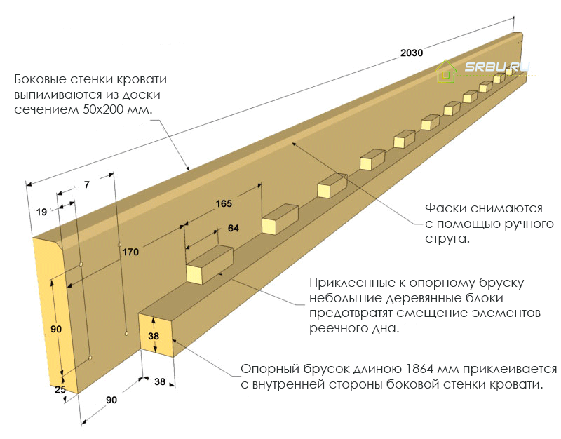 Les barres de support fixées à l'intérieur des parois latérales ont un certain nombre de blocs. Leur but est d'empêcher le mouvement des rails inférieurs. Pour fixer les barres de support, il est préférable d'utiliser à la fois de la colle et des vis autotaraudeuses afin qu'il ne fait aucun doute qu'elles résisteront à la charge.
