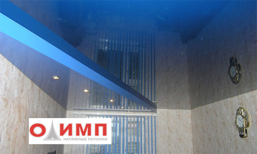 Plafond tendu brillant. Représente un tissu en PVC étiré brillant ayant une réflectivité. Les plafonds brillants peuvent être de différentes couleurs et utilisés à la fois pour des visites non résidentielles et dans l'appartement, dans des pièces telles qu'une cuisine, un salon ou une chambre. Augmentez visuellement l'espace.