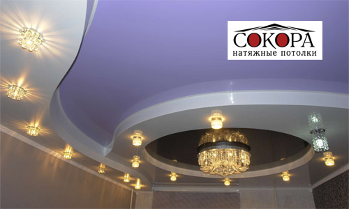La texture du plafond. Si vous avez des moyens limités, choisissez des plafonds blanc mat qui s'intégreront dans n'importe quel intérieur. Pour l'intérieur soi-disant riche, les toiles de vernis et de tissu sont les mieux adaptées.