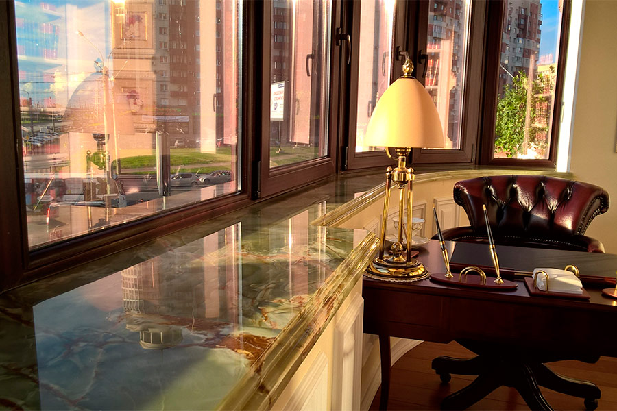 Un rebord de fenêtre en pierre naturelle est synonyme de luxe et de prospérité. Tout le monde ne peut pas se permettre une telle solution de conception - une pierre est un matériau très cher et capricieux, mais récemment, ce type d'agencement de l'espace de fenêtre est devenu populaire.