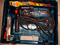 Il a trois modes de fonctionnement, vous pouvez choisir celui qui convient à tout type de travail, un fil d'alimentation très long est un avantage certain. Le forfait comprend: un étui pour ranger l'appareil, une poignée supplémentaire, une cartouche avec un adaptateur, une jauge de profondeur, une cartouche SDS.