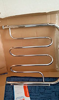 Porte-serviettes chauffant à eau du fabricant ENERGY, modèle PRESTIGE MODUS acquis via la boutique en ligne. Il a été vendu à ce moment-là sur le stock (à prix réduit), il ne coûtait donc que 7700. Une garantie de 60 mois. Le sèche-linge est en acier inoxydable, il est recouvert de chrome sur le dessus, plus un reflet miroir, il a l'air élégant et se marie parfaitement avec le reste des mitigeurs de ma baignoire. La forme ressemble à une échelle, en haut il y a une petite étagère. En fait, cette chose est très pratique dans la vie quotidienne, les petites choses sèchent rapidement sur le porte-serviettes chauffant et sur l'étagère supérieure, il y a généralement une boîte de chapeaux ou de chaussettes pour sécher. On peut également noter que le sèche-linge chauffe assez bien la salle de bain, depuis le moment où il a été installé, j'ai complètement oublié ce qu'est un bain froid, maintenant nous sommes toujours au chaud. Dans la vie de tous les jours, un porte-serviettes chauffant est tout simplement nécessaire, je ne sais pas comment on s'en passait.