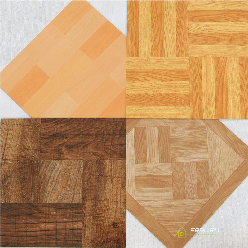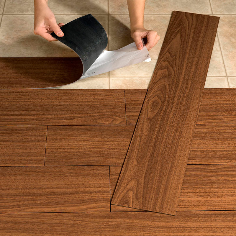 - Produits avec une couche auto-adhésive. L'installation s'effectue sur des surfaces parfaitement lisses et propres.Le montage à la taille souhaitée est effectué avant de retirer le film protecteur. Avant le collage, le film est retiré et le carreau est soigneusement posé sur le sol, en évitant la formation d'entrefer.