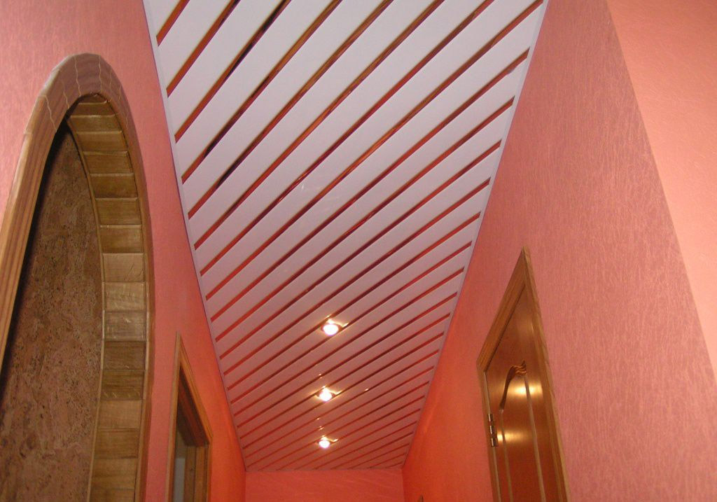 Le plastique est bon car c'est l'un des matériaux les plus légers. Par conséquent, il est facile à monter. Il suffit de fixer le profilé à la base du plafond sur laquelle sont fixées les lattes en chlorure de polyvinyle. Si vous devez réparer ou remplacer des communications, ces rails peuvent être retirés, puis installés en place. Un autre avantage de ce plafond est la résistance à l'eau. C'est peu coûteux, mais c'est plutôt joli. Un tel plafond est bon dans la salle de bain, le couloir ou la cuisine.