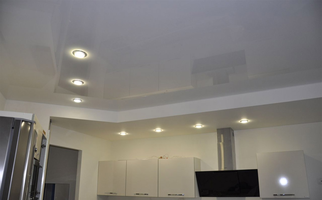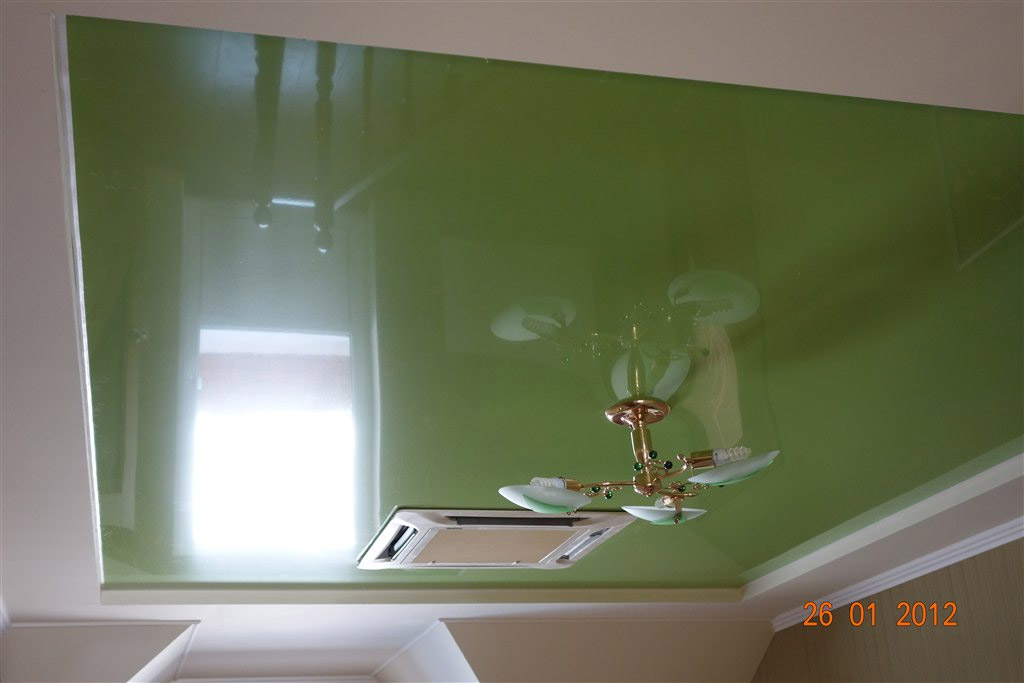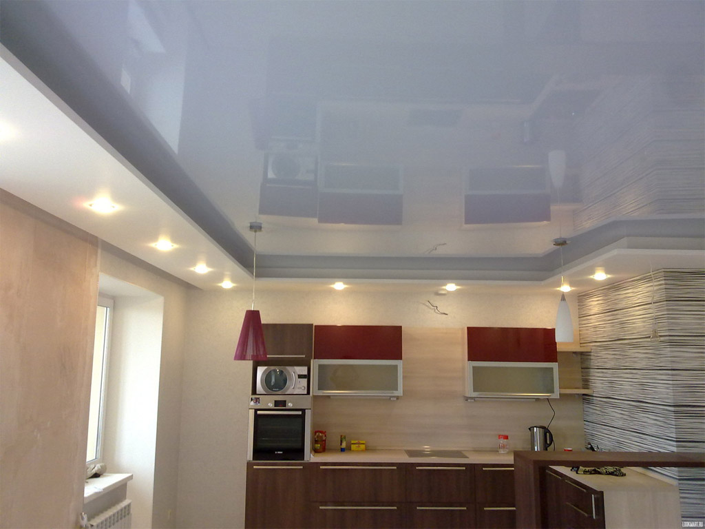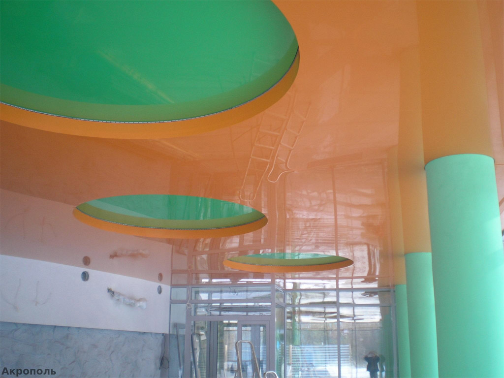 Les structures tendues méritent l'amour des consommateurs. Après tout, ils sont très beaux et vous pouvez les faire complètement à votre goût. Différentes nuances, motifs, textures, impression photo - tout cela crée un large choix. L'installation d'un tel plafond est rapide et fluide et ne nécessite pratiquement aucun entretien. Et tout le monde aime la légendaire résistance à l'eau des peintures PVC. C'est juste que le prix de ces produits est encore un peu élevé, malheureusement.