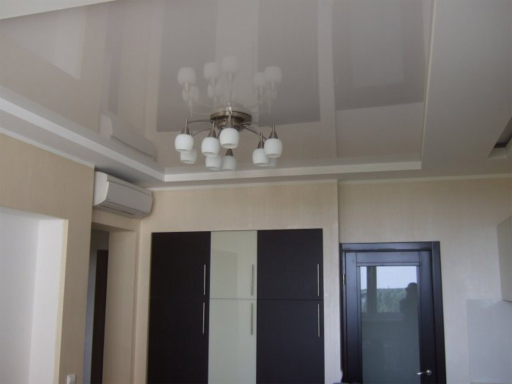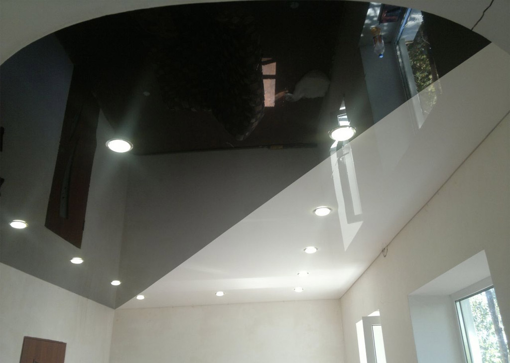 De toutes les variétés de plafonds suspendus, celle-ci est peut-être la plus populaire. Ils peuvent être constitués d'une fine pellicule de PVC ou d'un tissu, découpés de façon extrêmement précise à la taille de la pièce et tendus jusqu'au cadre. Si le matériau est mat, le plafond ressemble à un classique peint ou blanchi à la chaux. Le satin crée l'effet d'un éblouissement et d'une surface irisée, et le plafond en vernis vous permet de voir le reflet de la pièce, augmentant ainsi l'espace. Le tissu métallique a l'air futuriste et en daim - mystérieusement.