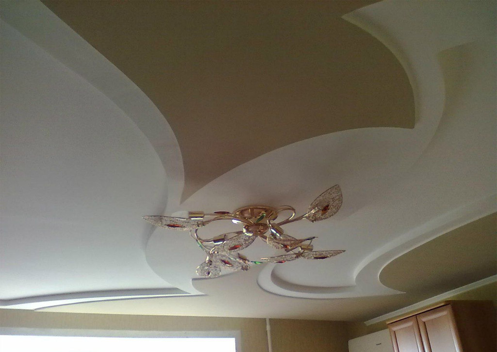 En utilisant des cloisons sèches, vous pouvez réaliser n'importe quelle idée, même la plus audacieuse. Lignes droites et ondulées, plis lisses des surfaces, détails bouclés d'un décor - tout cela est à la portée d'un maître travaillant avec des cloisons sèches. Chaque élément est fabriqué individuellement, en tenant compte des caractéristiques d'une pièce particulière. À la demande du client, le plafond peut être à plusieurs niveaux, ainsi qu'avec des niches ou des saillies à l'intérieur. Les éléments décoratifs et l'éclairage la décorent parfaitement.