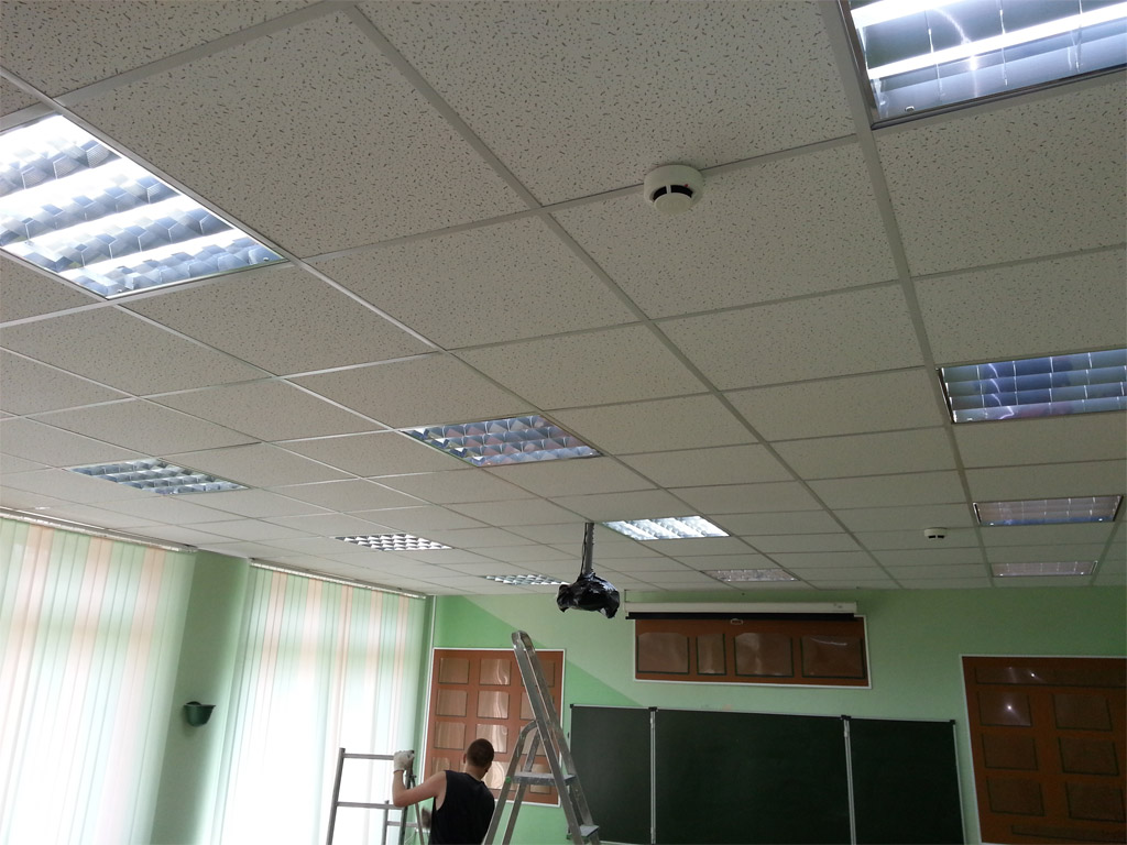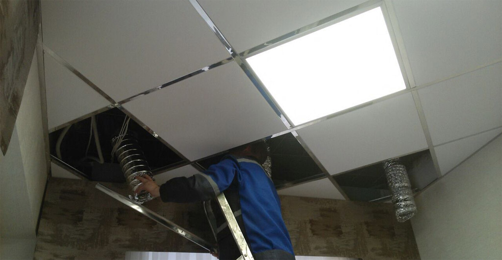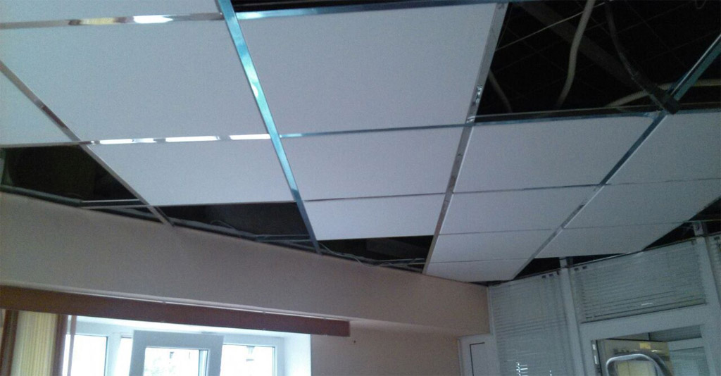 Prix bas, fonctionnalité, vitesse la plus élevée et faible coût d'installation - tout cela attire l'acheteur. Le plafond fini est très facile d'accès aux communications. Il existe de nombreuses options pour les poêles, y compris ceux étanches. Si vous le souhaitez, vous pouvez commander un plafond non pas d'une couleur blanche standard, mais d'autres nuances. Cependant, le moins du système carrelé est présent - la fragilité. Les panneaux de fibres minérales se cassent facilement lorsqu'ils tombent ou sont touchés. Un tel plafond ne peut pas être soumis à de fortes pressions.Cependant, le bon marché et l'interchangeabilité des plaques minimisent cet inconvénient.
