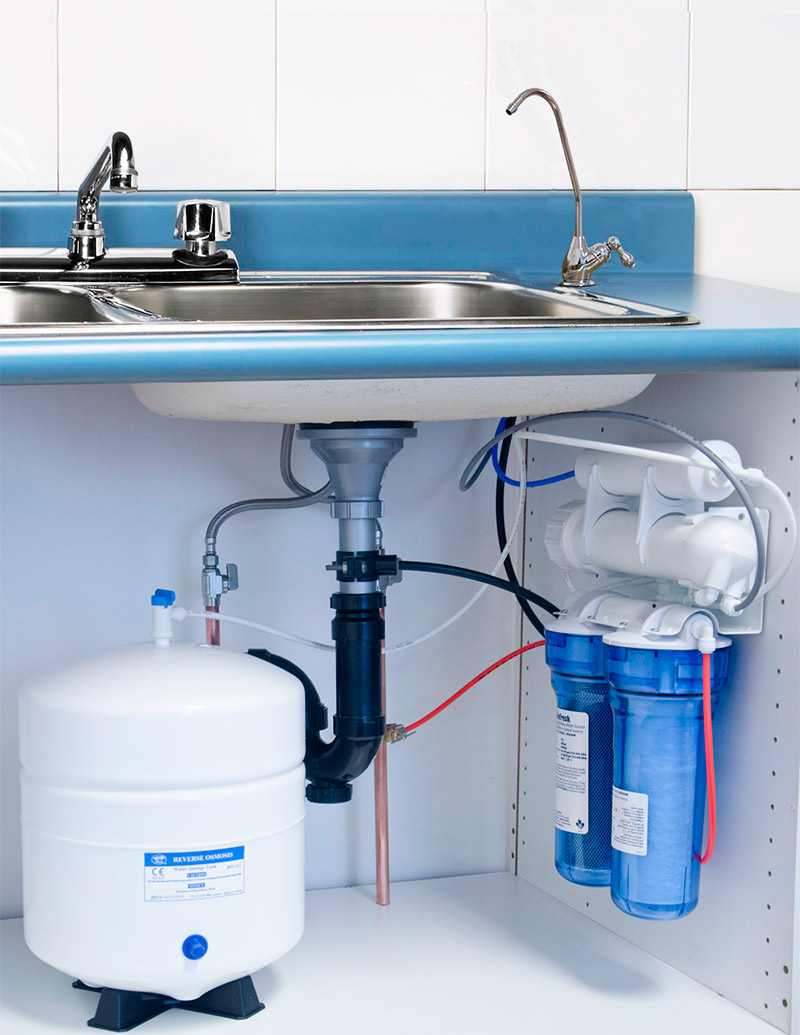 Quant aux caractéristiques de conception des filtres avec placement sous l'évier, elles peuvent être réalisées en deux versions - systèmes d'osmose inverse et filtres à sorption à flux continu.
