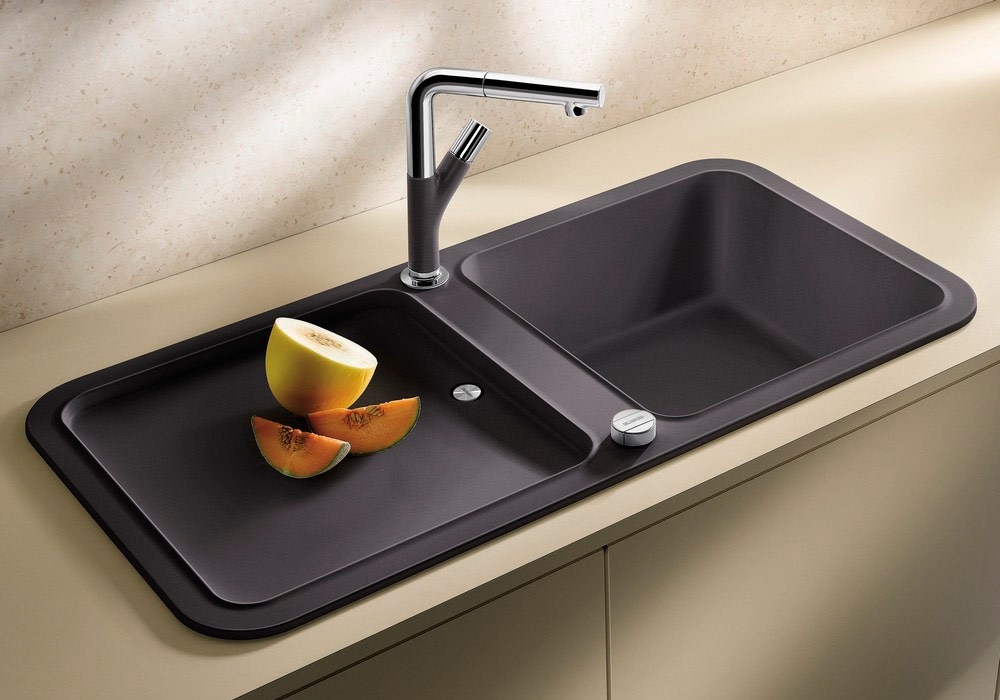 Nous pouvons dire avec certitude - si vous avez une cuisine spacieuse, meublée avec des meubles design et décorée dans le même style, vous pouvez toujours trouver un évier en granit qui est en harmonie avec la situation. Ce sera l'une des meilleures solutions.