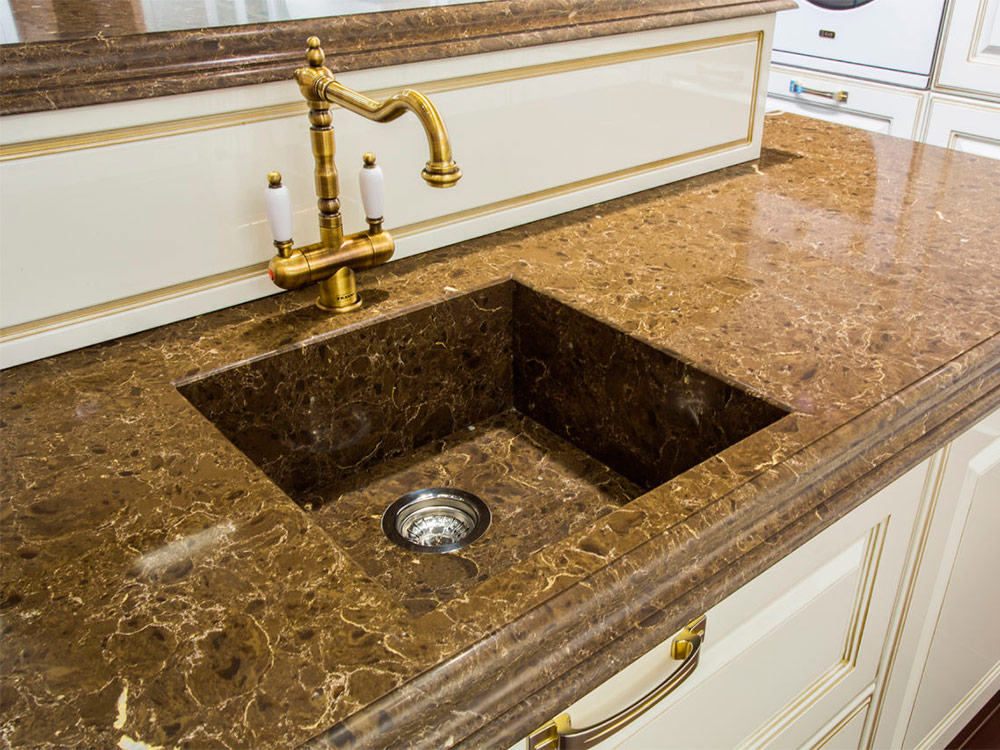 Évier en pierre agglomérée pour la cuisine, dont les avantages et les inconvénients sont à peu près les mêmes que ceux des carreaux de porcelaine dans le nombre de produits à fort potentiel. De nouveaux types de liants en constante évolution permettent d'améliorer continuellement les performances du produit.