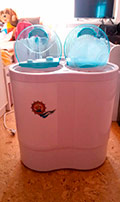 Il s'efface bien, le temps de lavage doit être réglé manuellement, un cycle de lavage peut durer au maximum 15 minutes. L'eau doit également être versée indépendamment et vidangée en conséquence. Nous recommandons la machine à laver Assol pour une utilisation dans le pays.