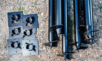 Les pieux à vis les plus populaires dans les constructions de faible hauteur sont des tuyaux à parois épaisses en métal ordinaires avec une vis dans la partie inférieure. Ils sont vissés dans le sol comme des vis ordinaires, cela se fait manuellement ou à l'aide de machines spéciales. La longueur des pieux peut atteindre 10-12 m avec un diamètre de 50-150 mm.