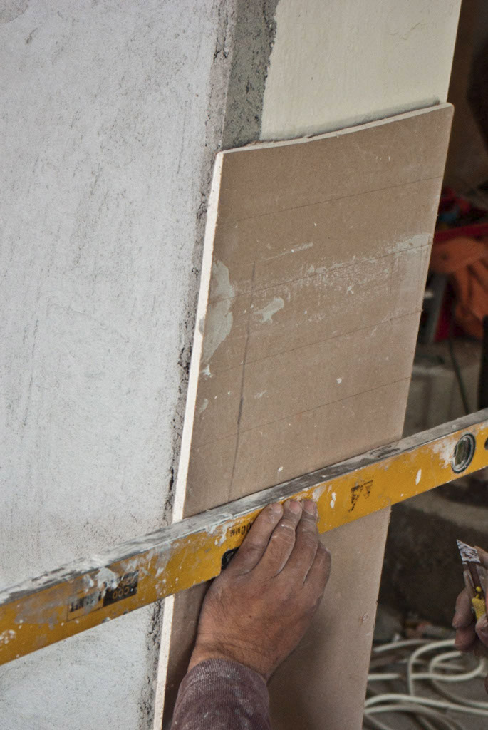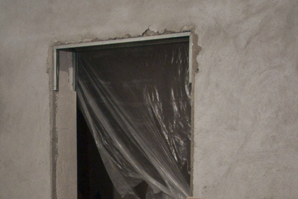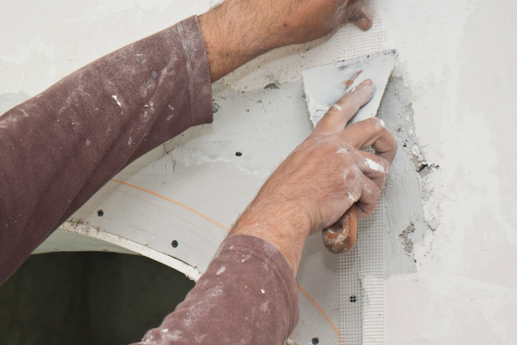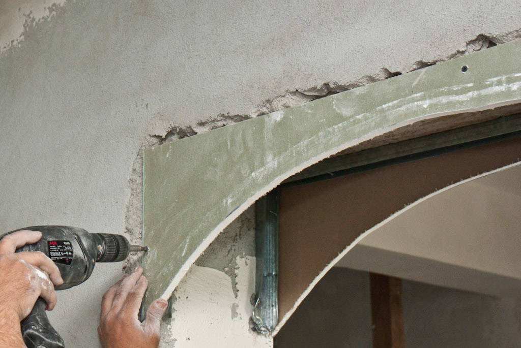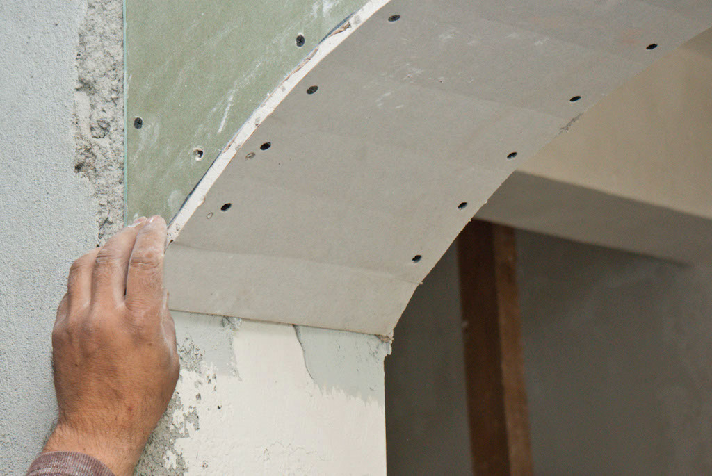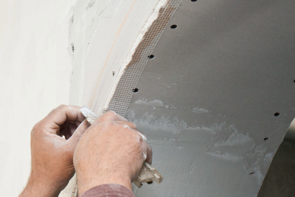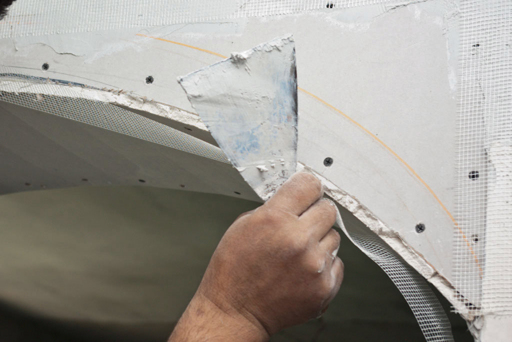 Finition des bords inférieurs de l'arc de cloison sèche.