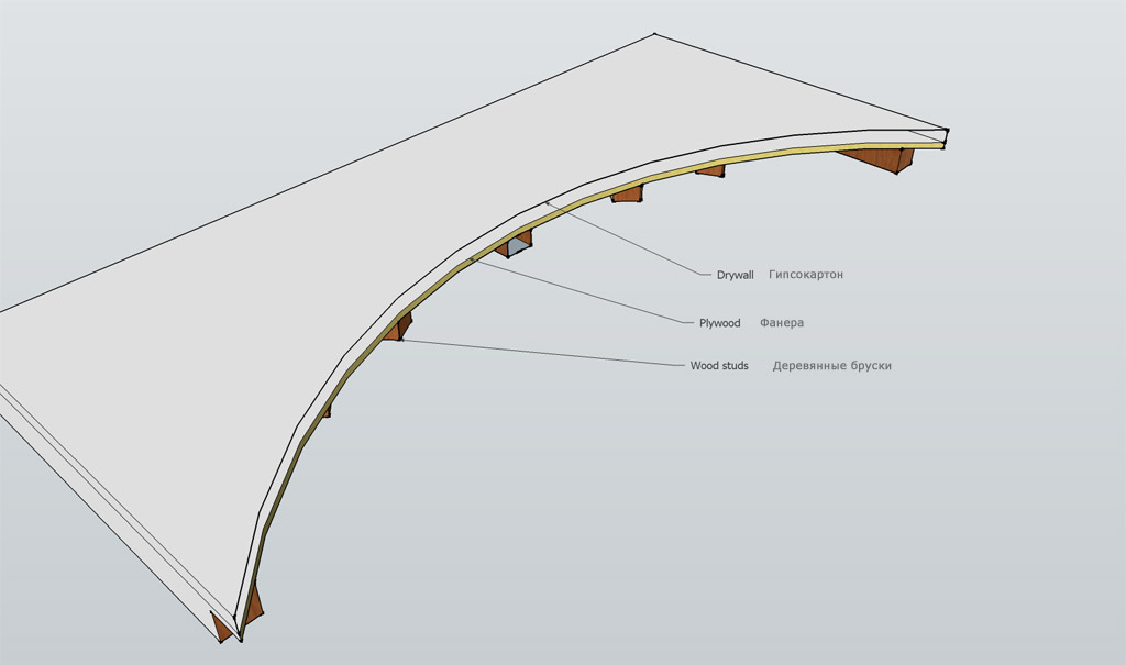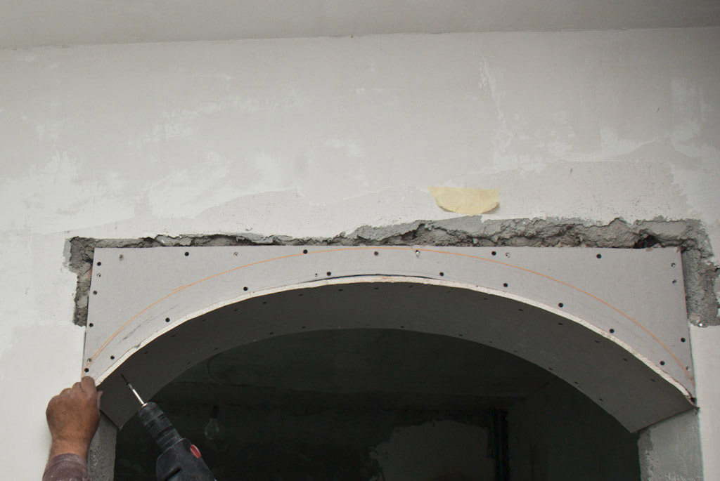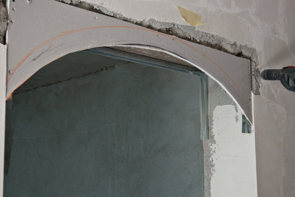 Lors de l'installation d'un rectangle de cloison sèche, alignez parfaitement ses bords avec les murs arqués. Assurez-vous également que les extrémités du rectangle correspondent à l'arc, sinon ajustez la longueur du rectangle.