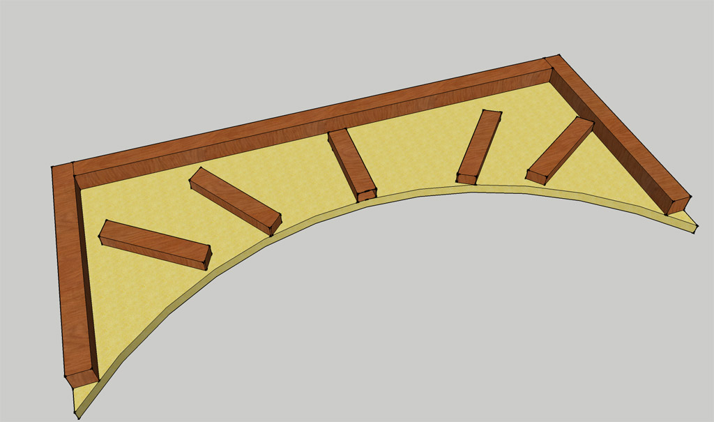 Cadre pour arc de plaque de plâtre en contreplaqué et barres fixées à celui-ci.