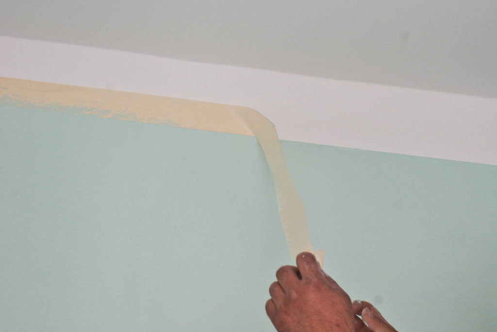 Si vous pensez que les murs sont parfaitement peints, vous pouvez passer à la dernière étape - retirer le ruban de papier. Cela doit être fait avant que la peinture ne sèche. Essayez de retirer le ruban avec précaution afin de ne pas endommager les bords du revêtement fraîchement appliqué.