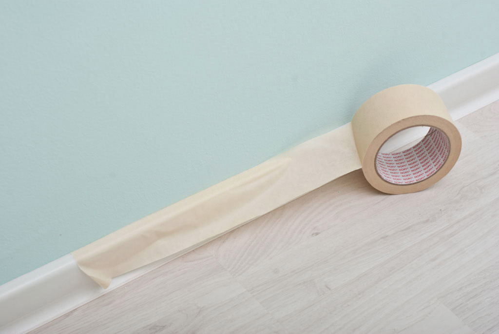Protection des plinthes avec du ruban adhésif.