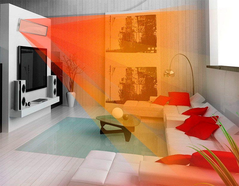 Ce type de chauffage est basé sur la génération de rayons de chaleur. Ils sont absolument sûrs et capables de chauffer des surfaces à une certaine distance de la source. De même, le soleil nous donne son énergie. Dans la zone de couverture d'un tel appareil de chauffage, une personne se sent aussi à l'aise que possible.