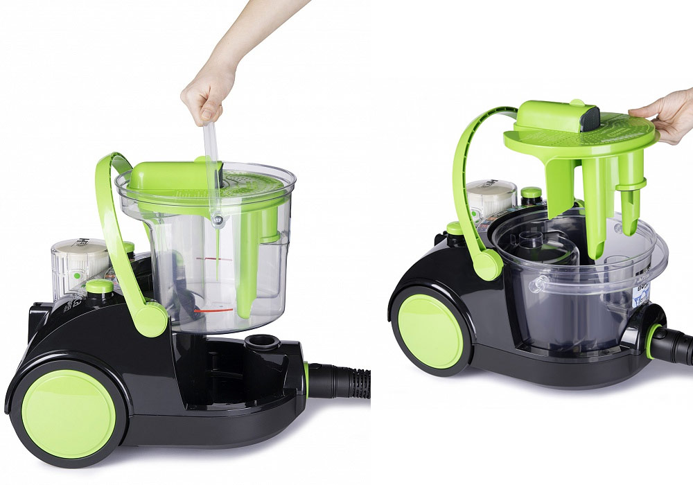 - Capacité à travailler à la fois sur le mode d'un aspirateur conventionnel (avec un sac), et sur le mode d'un aquafiltre.