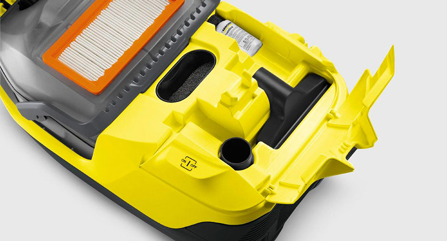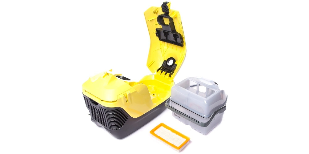 - Un conteneur en vrac pour l'eau sale - jusqu'à six litres. Et en plus un dépoussiéreur de trois litres.
