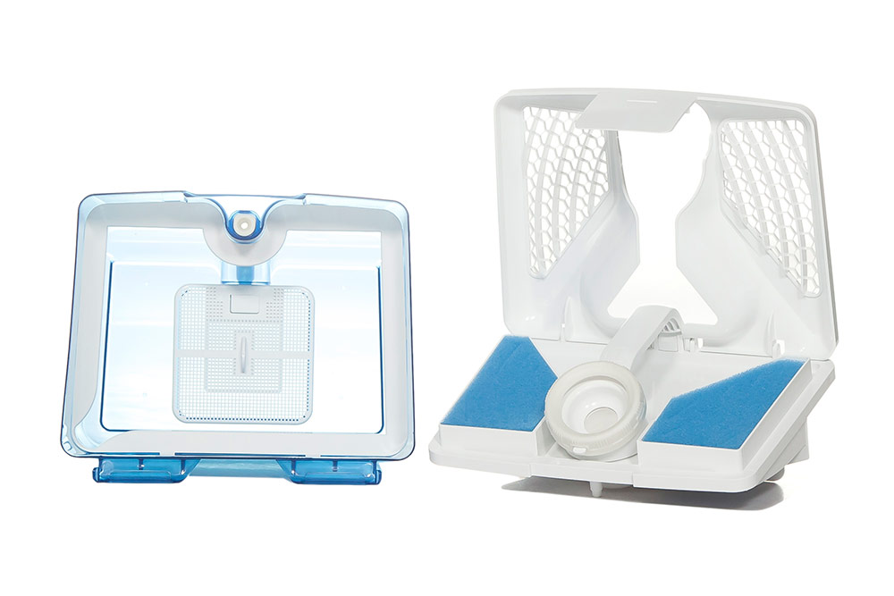 - Le bac à poussière est en plastique durable et facile à nettoyer.