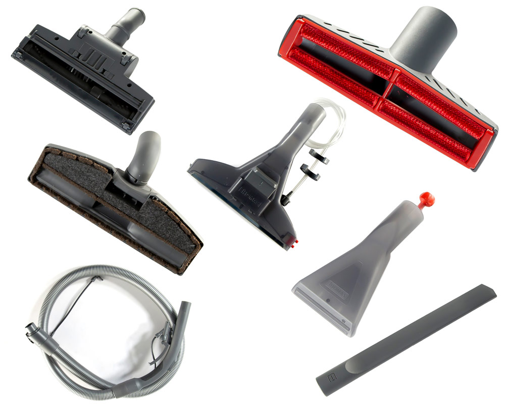 Dans les aspirateurs de cette marque, en règle générale, il existe un bon ensemble de buses. En plus des tapis, il est possible de nettoyer avec succès la poussière et la saleté des sols stratifiés, du parquet, des meubles, des étagères avec des objets placés dessus. Habituellement, une brosse turbo est incluse, ce qui est particulièrement efficace pour lutter contre la pollution.